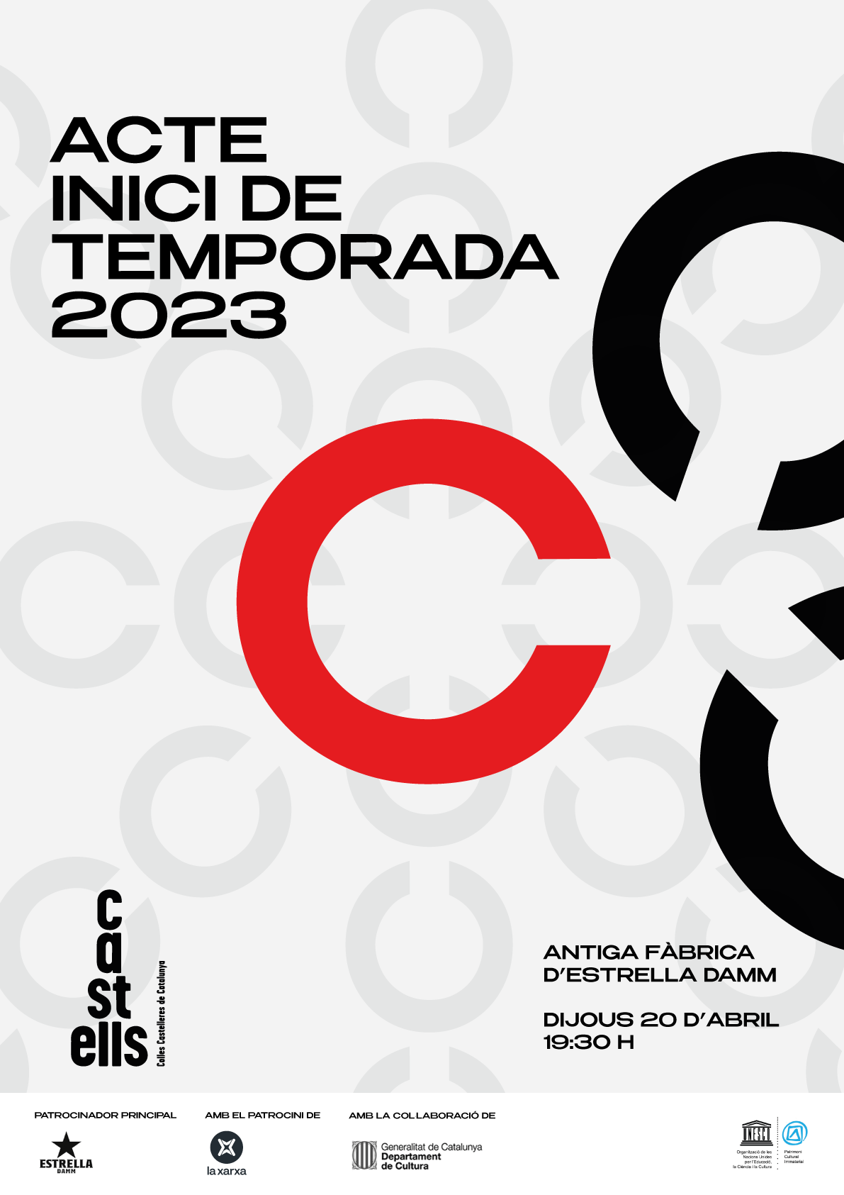 L’Acte d’inici de temporada de la Coordinadora de Colles Castelleres de Catalunya (CCCC) es va celebrar, un cop més, a l’Antiga Fàbrica Estrella Damm Barcelona. En aquesta ocasió es va centrar en tot allò relacionat amb l’assaig i els passos previs a les actuacions castelleres. Amb aquest homenatge a la constància i al compromís, la CCCC va donar el tret de sortida simbòlic de la temporada castellera 2023.